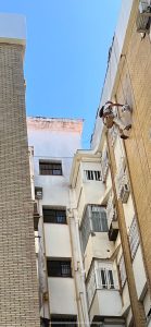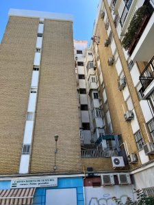 Continuamos con los trabajos adjudicados en una Comunidad de Propietarios en Sevilla. Aplicando limpieza y tratamiento en ladrillos vistos de la fachada y posterior pintado de zonas enfoscadas.